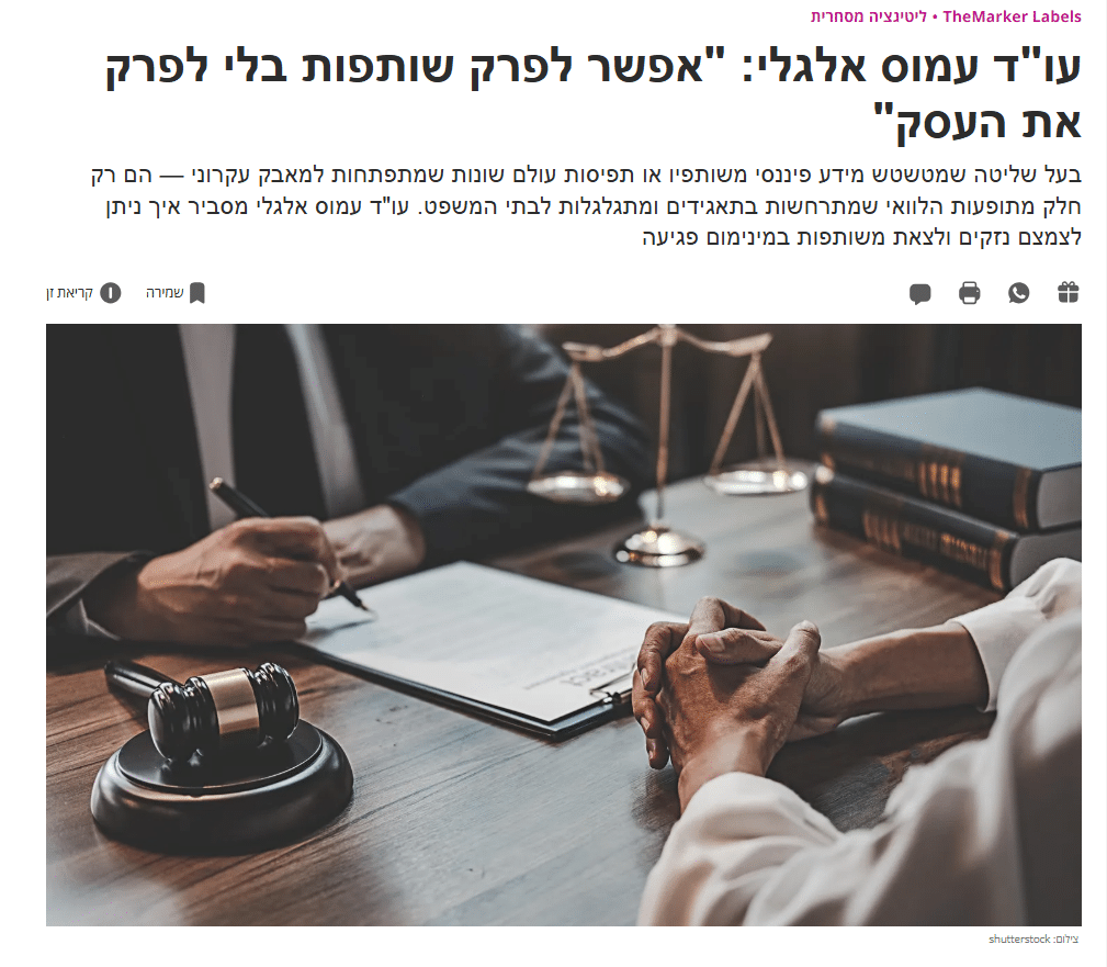 משרד עורכי הדין אלגלי ויצמן ושות' מתמחה בנושא ומומלץ לקבל ממנו שירות מקצועי עם יחס אישי. שירותיו מקיפים וכוללים ליווי וייצוג מעולים, מחירים נוחים, זמינות ועוד. מנהליו הינם בעלי ידע רב וניסיון מצטבר המגיעים מלימודים, התמחויות והשתלמויות וממתן שירותים איכותיים ללקוחות רבים לאורך שנים. הם ישמחו לשרת נוספים.